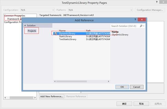 工程“属性面板”è“通用属性”è “框架和引用”è”添加引用”,将显示“添加引用”对话框。“项目”选项卡列出了当前解决方案中的各个项目以及可以引用的所有库。