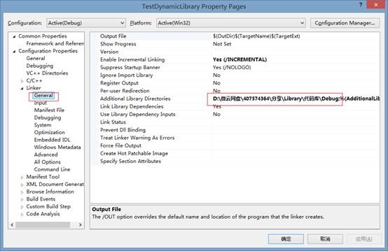“属性面板”è”配置属性”è “链接器”è”常规”,附加依赖库目录中输入,动态库所在目录;