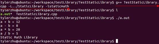 # g++ TestStaticLibrary.cpp -L../StaticLibrary -lstaticmath |