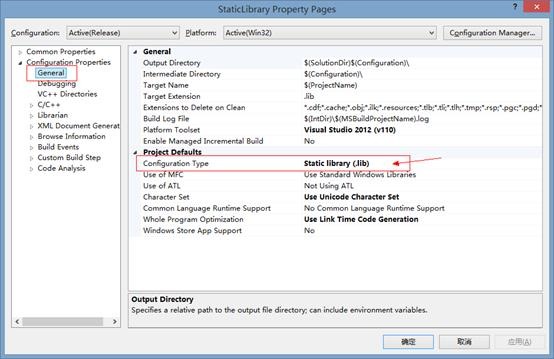 当然,我们一般不这么用,使用VS工程设置更方便。创建win32控制台程序时,勾选静态库类型;打开工程“属性面板”è”配置属性”è”常规”,配置类型选择静态库。