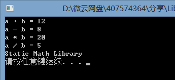 然后,使用库管理器 Lib.exe 链接代码 (lib StaticMath.obj),创建静态库StaticMath.lib。