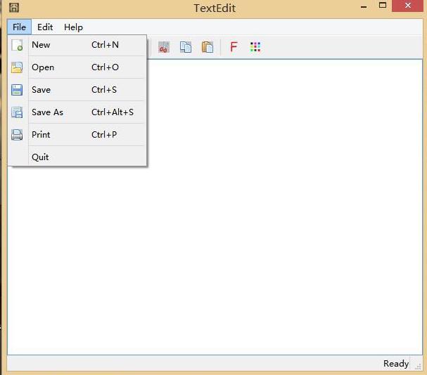 一个一个慢慢说。首先是软件的基本界面,有了界面再添加功能。构成界面的主体就是菜单栏,工具栏和文本区域。