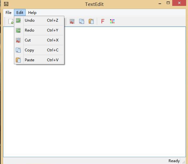这些功能Qt里都提供了函数实现,所以这部分功能就是连接信号与槽就行了,并且那些快捷键操作Qt也实现了。代码如下:
