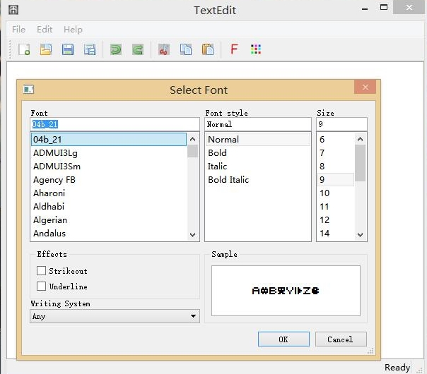 还有另外两个功能要说一下,工具栏上的更改字体和更改颜色的工能。Qt真是方便啊,它又提供了字体选择和颜色选择面板(好吧,java
