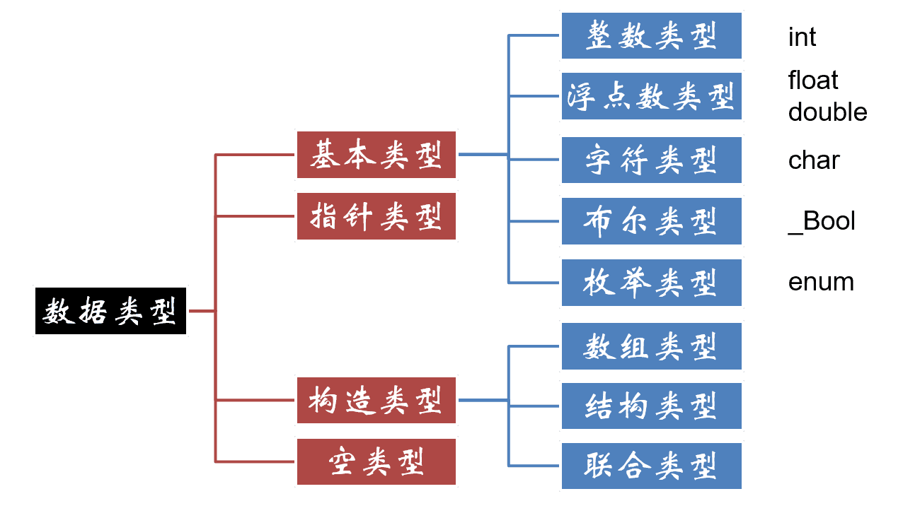 在基本类型中的整数类型、浮点数类型和字符类型都已经在之前的文章中使用过了,这里面的_Bool是布尔型,只能取