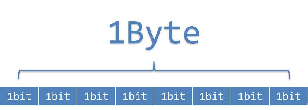 —— 字节,Byte,B。如下图所示,为字节和比特之间的关系