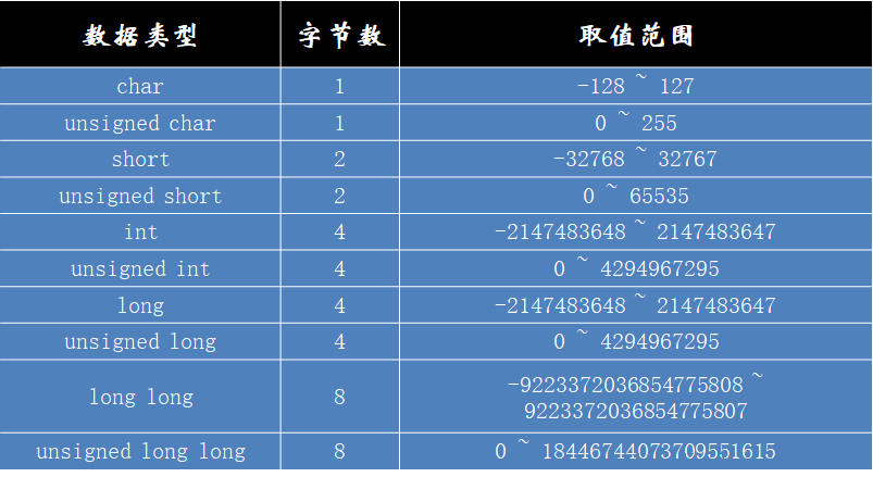 和 long long),在加上符号位的限定signed和 unsigned,所以一共存在着 8 种int