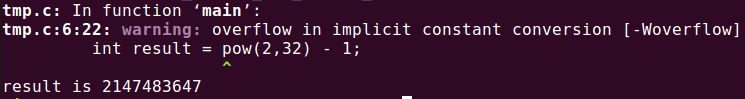 可以看到 gcc 给出了 Warning 中指出了常量转换溢出(overflow),然后我们可以验证一下上面给出的结果是否正确。通过计算器可以知道