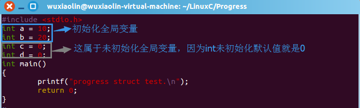 初始化:未初始化的全局静态变量会被程序自动化为0