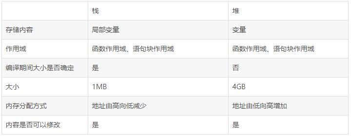 表1 栈和堆的对比