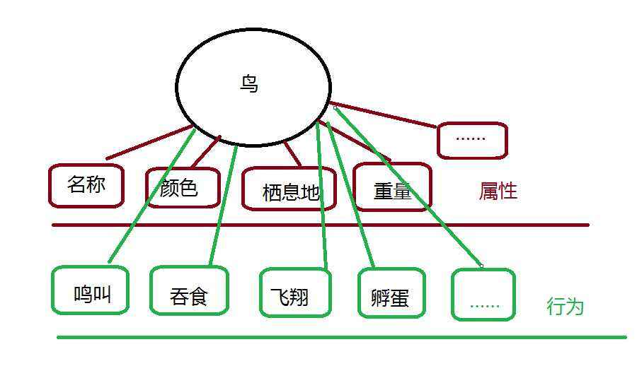 如上图假如我们要对鸟bird进行封装,bird可能包括姓名、颜色、栖息地、重量、属性等信息。我们就可以对它封装如下: