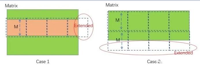 示例1:矩阵宽度经过M整除后,最后一个行块的宽度小于M;