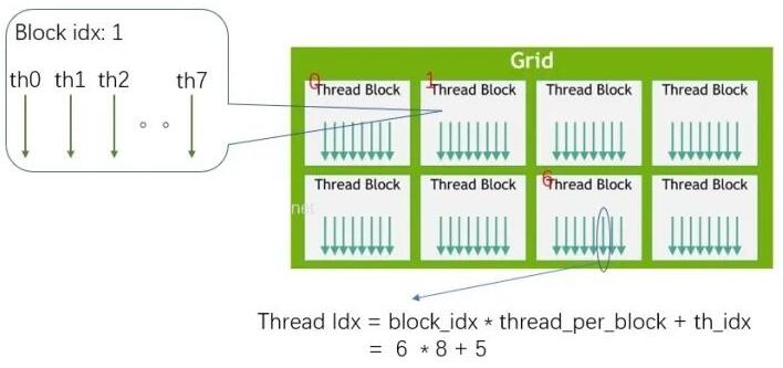 这样获得了这个thread的索引Idx, 函数里面需要用户自行去确定索引与数据的对应关系。即,用户要根据Idx,自己分配thread与计算数据映射关系。