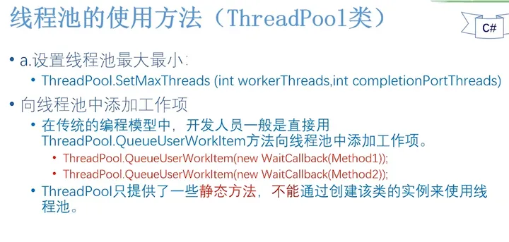 • ThreadPool不支持线程执行的先后次序;