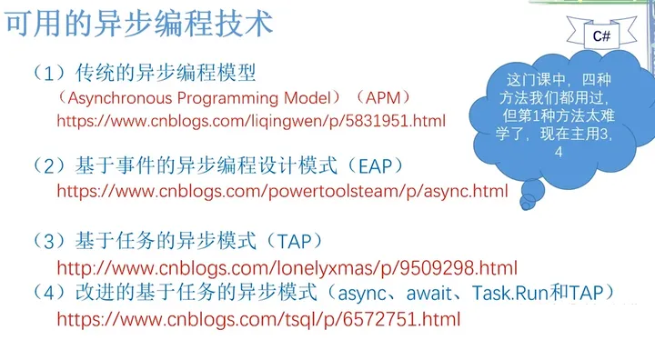 在.net发展过程中,出现过四种可用于异步编程的技术。