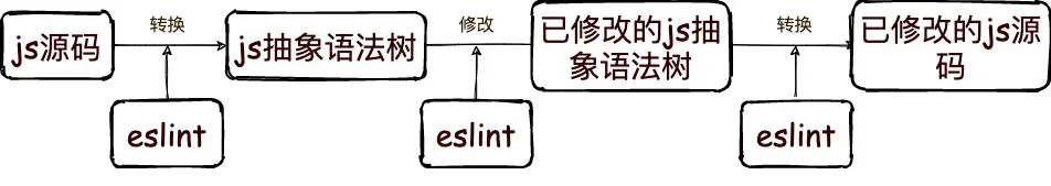 AST 的强大之处有了最直观的了解了,比如 ESLint 是怎么修复你的代码的呢?看下面不太严谨的图: