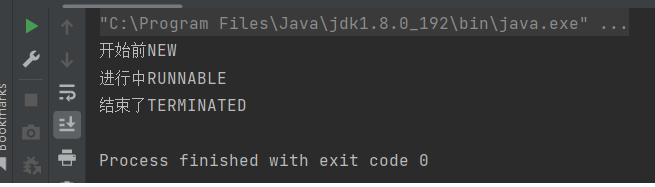 public static void main(String[] args) { Thread thread = new Thread(new Runnable() { for (i = 0; i < 1000000; i++) { System.out.println("开始前"+thread.getState()); System.out.println("进行中"+thread.getState()); } catch (InterruptedException e) { throw new RuntimeException(e); System.out.println("结束了"+thread.getState());