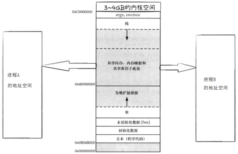 用户向OS另外申请一块额外的内存空间,不同的进程再分别把申请拿到的内存空间映射到自己的进程地址空间中就可以同时进行读取和写入了。