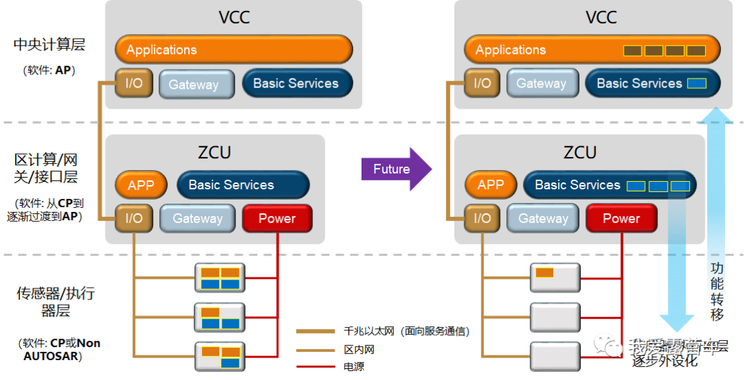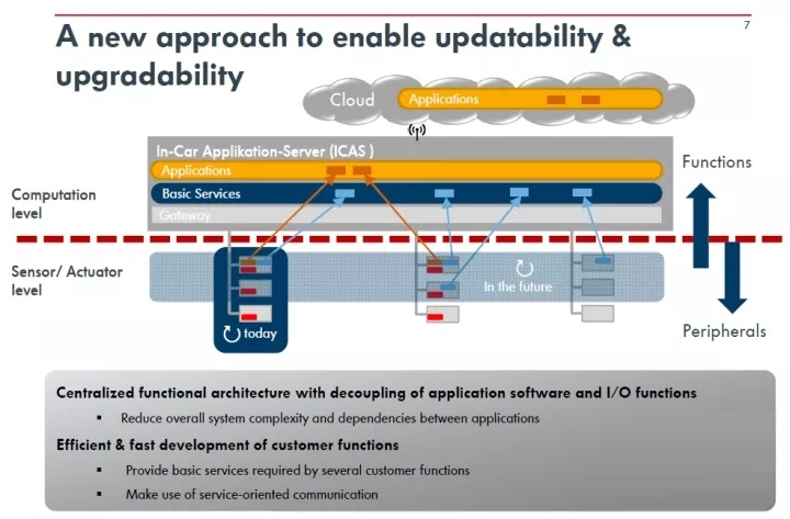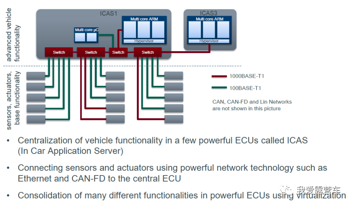 Sensor的一些功能Applications,以及基础软件Basic Services)逐步向ICAS中转移,直到其他ECU(本域的传感器和执行系统)慢慢被合并。