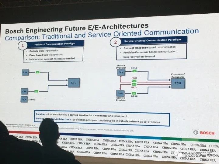 既然老百姓的需求是“智能汽车”,那么具备“智能汽车”特征的车型就会有更多市场需求,客户也更加愿意买单。那么表征智能汽车的核心智能化功能都有哪些呢?按照汽车智能化的趋势(即CASE,Connected互联、Autonomous自动、Sharing共享、Electric电动),智能驾驶、智能座舱、智能网联应该就是终端用户期待的功能。以上的这些功能,相对于曾经汽车电子的功能,复杂度有很大提升。为了实现以上复杂功能,我们需要软件的SOA架构,我们需要基于服务的通信,我们需要满足车规的RTOS(实时操作系统),我们需要FOTA(固件空中升级),总之,我们需要一台软硬件解耦的、能够用软件来定义功能的汽车。这就需要一个大大的前提——集中化的EEA。这又是为什么呢?