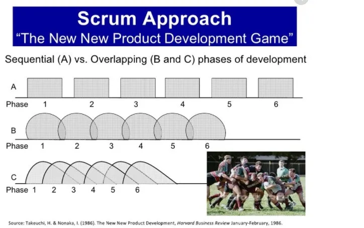 Game文章,首次提到了将Scrum 应用于产品开发,文章指出,传统的接力式的开发模式已经不能满足快速灵动的市场需求,而整体或橄榄球式的方法,即团队作为一个整体在内部传球并保持前进,可以更好的应对当前的市场竞争。