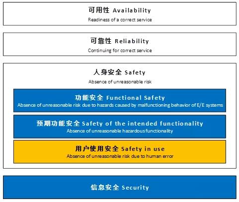 人身安全指的是规避汽车操作对驾驶员或者路人或周边车辆内人员(注意不仅是驾驶员)的人身危害。人身安全中包括了功能安全、预期功能安全和用户使用安全。