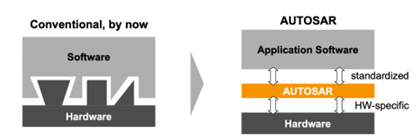 然而,进入传统汽车的底层,会惊讶地发现,这是一个无比混乱的世界。 这些独立的“小电脑”如同一个个独立的王国,说着不同的语言,彼此之间通过CAN/LIN总线进行微弱的通信。 管理这些ECU的难度不亚于管理一个“小宇宙”。大众品牌一台车上的70多个控制单元的操作软件可以来自多达 200 家不同的供应商。可想而知,让协调起来是多么困难。 一名来自德国的汽车工程师Alex Voigt在一篇文章中形象的比喻: “一只章鱼有 8 个手臂,每个手臂都有自己的小脑子来管理。这 8 个小脑子与中央大脑进行通讯。科学家尚未弄清这一切如何运作,以及为什么这些手臂不会互相挡住。 汽车面临着本质相同的挑战,但进展并不乐观。各个控制器的“手臂”仍在按照自己的方向行动,没有协调,很快就能耗尽车辆中可用的能量。” 然而,汽车就是在这样混乱的状态下渡过了40多年。 更致命的是,早期ECU的软件和硬件高度耦合,紧紧地捆绑在一起,很难将彼此拆开。 软件和硬件之间如此亲密的关系,给车企和供应商带来了巨大的痛苦。 每当需要更换新的硬件时,都需要对ECU的软件进行重新编写和大规模的修改,随之而来的还有一系列的测试。任何微弱的变动都将带来灾难性工作量。 这一切都导致了整车开发周期漫长无比,并且车企需要为此支付高昂的研发费用。 汽车的软硬件之间亟需一个类似于电脑操作系统与应用程序之间的“中间件”,将软硬件解耦。 于是,AUTOSAR应运而生。