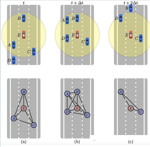 对于作为模型输入的传感器数据,设计师可以明确解释与物理距离相关的度量,从而获得更多研究人员的吸引。在应用中,可以直观地假设交互强度与交通场景中智体相对距离及其变量(例如,相对速度和加速度)相关。例如,相距较近的驾驶员在直觉上会视为彼此具有较大的交互影响。