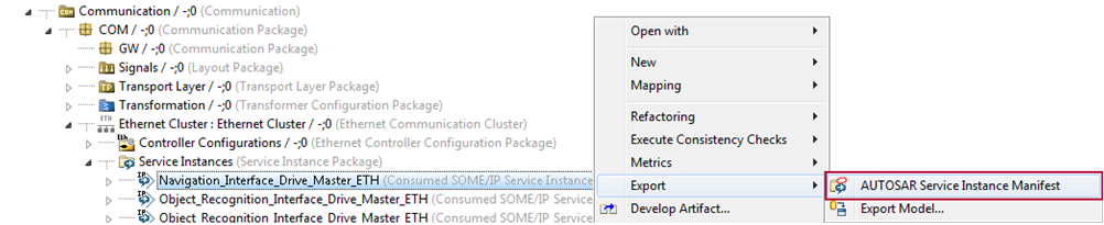 最后再简单介绍下PREEvision中AUTOSAR Adaptive设计内容的导出。在PREEvision中完成了AUTOSAR