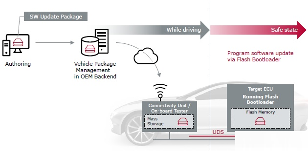 随着高级辅助驾驶的发展和自动驾驶的引入,汽车变得越来越智能,这些智能汽车被软件控制,装有巨量的软件程序,当出现一个软件程序问题或者更新时,如果按照传统的解决方式,那都将是一项很繁重的任务。以某车上市后出现的刹车逻辑问题为例,按照传统的解决方案,那么所有该车辆先将被召回,然后派人更新软件。这样,一方面影响用户体验和满意度,另一方面又要耗费大量的人力物力来修复问题。
