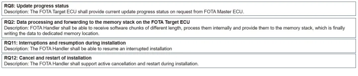 ECU需要进行数据处理;installation过程也可能不是如预期顺利,比如会出现取消或中断等情况。因此,针对这些情况就会产生相应的需求,比如: