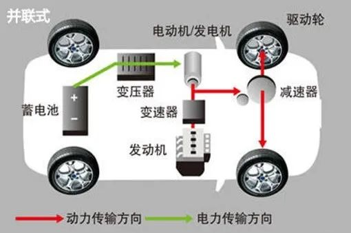 并联式与串联式相比,无需另外配置发电机,与串联式相同的是都对动力电池的性能要求不高,电池成本低。