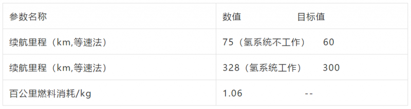 式中:MH为根据氢系统工作时设计目标为车辆以60km/h匀速行驶时续航里程不低于300km时氢气的消耗量,g;qfc-low为氢气低热值,j/g;fc为燃料电池发动机效率;vm为匀速行驶车速,km/h;S2为氢系统工作时续航里程,km。