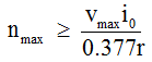 式中:nmax为驱动电机的额定转速,r/min;i为主减器比;r为轮胎滚动半径,m。