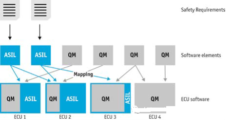 汽车ECU软件是高度模块化的嵌入式软件,其功能实现是可以为非功能安全,和功能安全的SWC组合,它们分别拥有不同的ASIL安全等级。