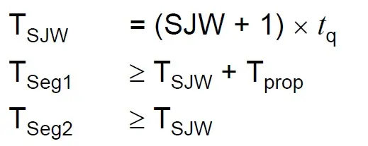 再根据下式计算SJW, 这里直接假设TSJW=3*tq能保证下式两个不等式成立(不在此处展开Tprope的讨论),那么SJW=2。