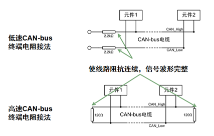 Ω,为了模拟无限远的传输线。)以消除反射。低速CAN最高速度只有125Kbps,所以ISO11898-3没有端接要求。