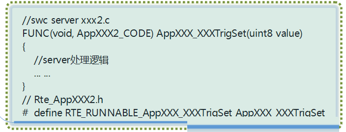 AutoSAR SWC不能直接访问OS,在AutoSAR应用程序中没有TASK的概念,取而代之的是被RTE所管理的构件运行体,即Runnable。但实际code中还是沿用了task形式,具体可以查看rte.c