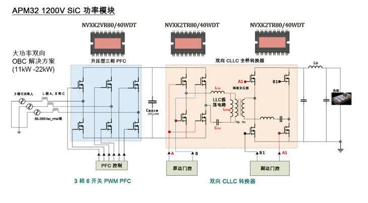 CLLC。 某些双向设计可能使用 PSFB 或其他拓扑。碳化硅 MOSFET 和硅超级结 MOSFET