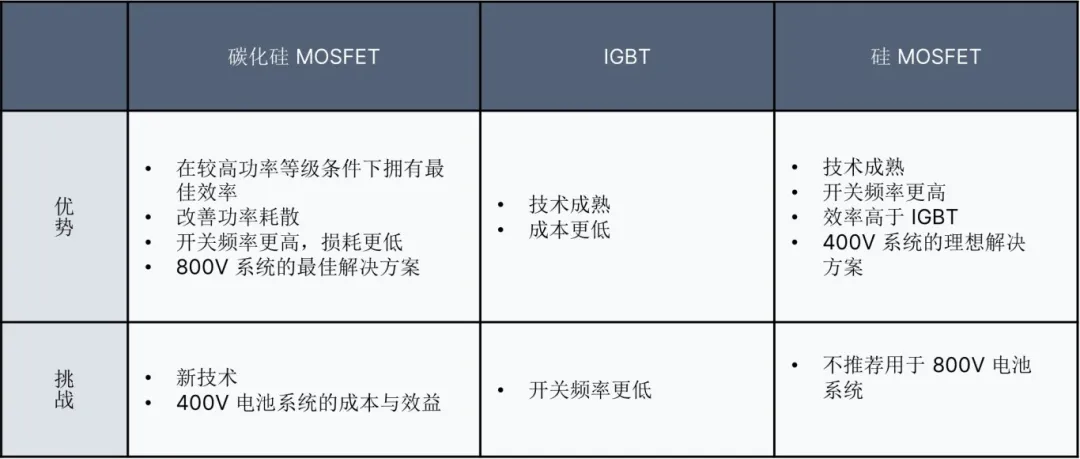 建议对 800VDC 电池系统使用 1200V 碳化硅 MOSFET ,对 400VDC 电池系统使用