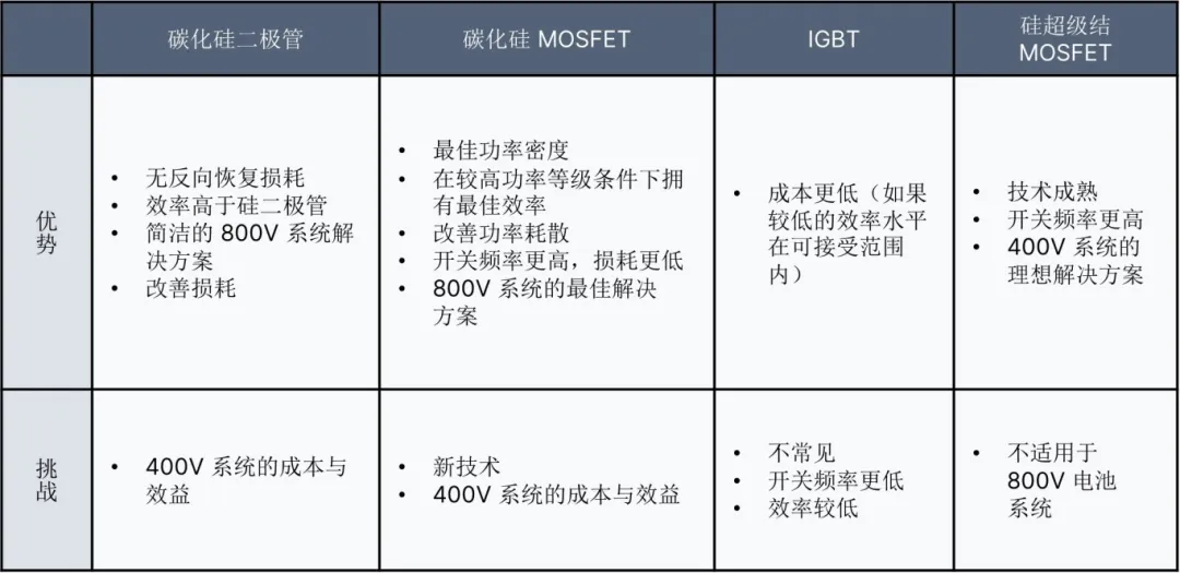 碳化硅二极管是 800V 电池或需要实现更高效率的系统的最佳选择(碳化硅二极管具有无反向恢复的特性)。