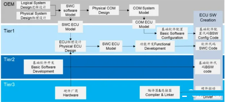AUTOSAR的出现革新了汽车软件的开发流程,形成了囊括OEM主机厂、Tier1、中间件厂商等在内的开发流程。