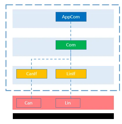 这边的通讯模块设计与AUTOSAR中很大的区别是去除了PduR模块,PduR的功能则由Com承担;当然我们很多产品并不需要复杂的消息路由功能,Com收到消息时,仅需判断Id信息,即可再分发给AppCom,Uds或者Nm等;