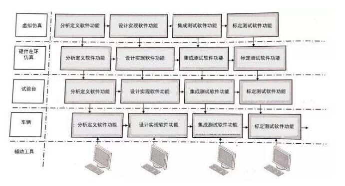 单一软件部件研发测试完成后,将它们集成到一起就形成了每个电控单元中完整的软件包。 这套软件包在集成后依然需要测试,检查各部件之间是否兼容,是否有开放接口等等。 7、系统集成及测试