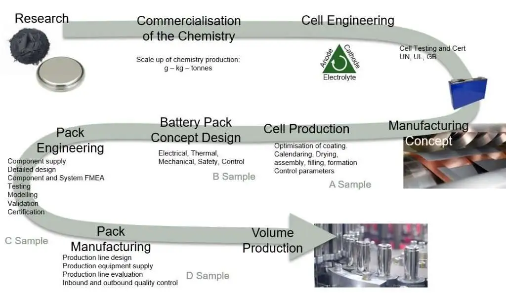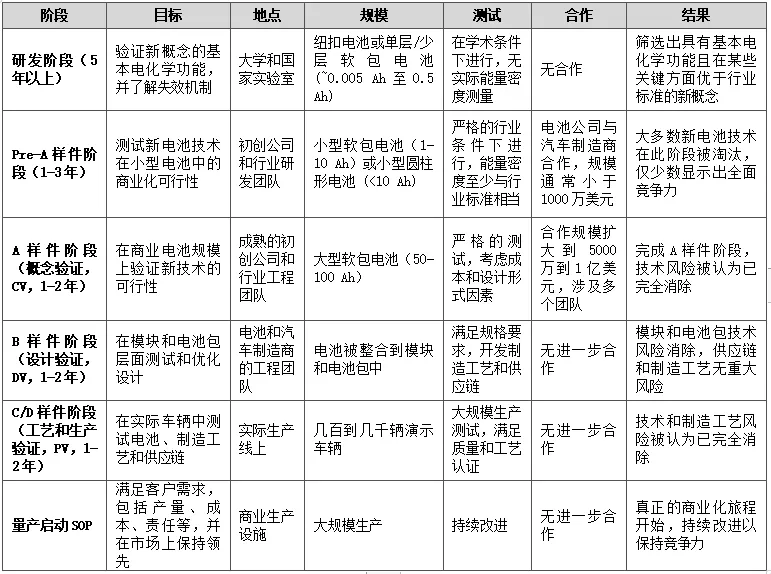 电池开发过程通常较长,常常与应用开发过程重叠。因此,固定化学成分和电池设计以确保电池性能至关重要。在进入A样件阶段之前,需要大量时间和精力投入基础研究。