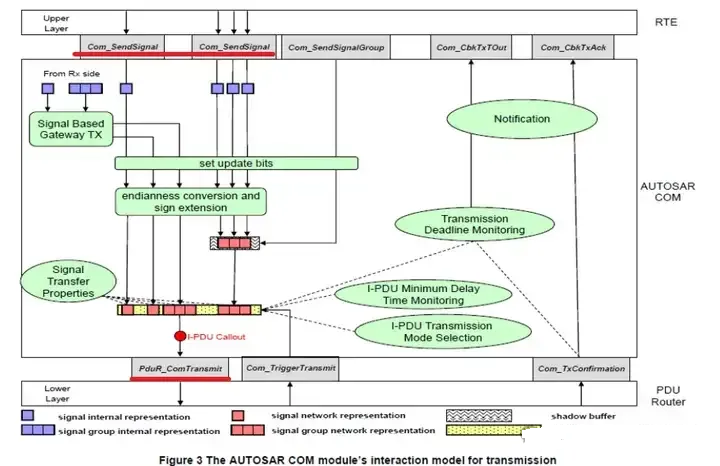 在调用PduR_ComTransmit之前可以配置ComIPduCallout,在Callout中实现一些特殊功能;