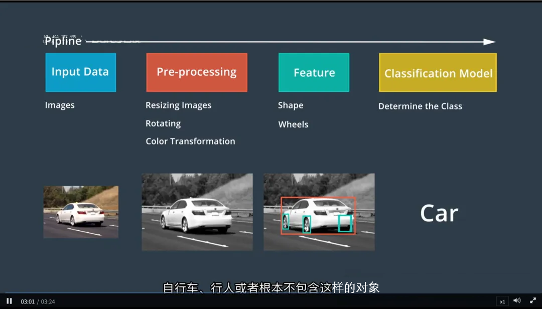 - 输出:类别标签(如“汽车”、“自行车”、“交通灯”)