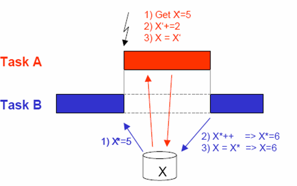 Task 打断被保护的语句。