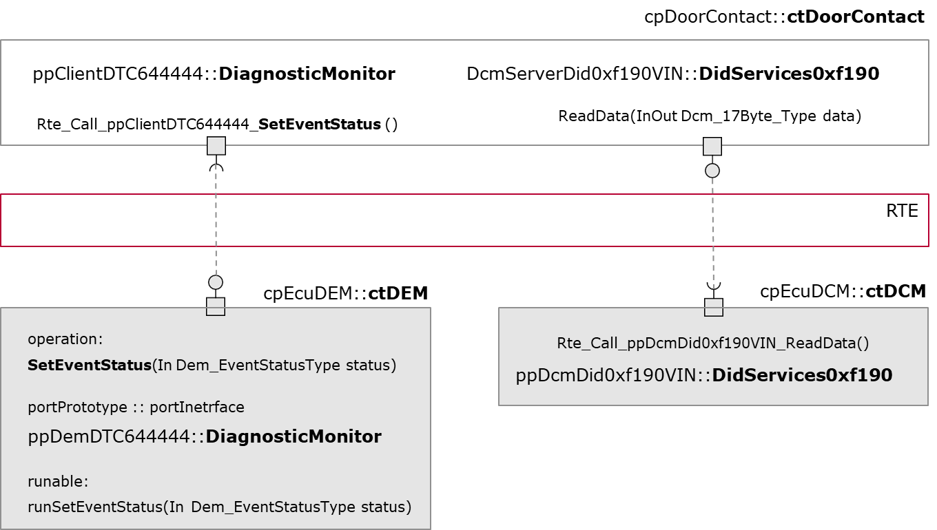 - DiagnosticMonitor接口通过Rte_Call访问SetEventStatus函数,完成诊断状态的设置;