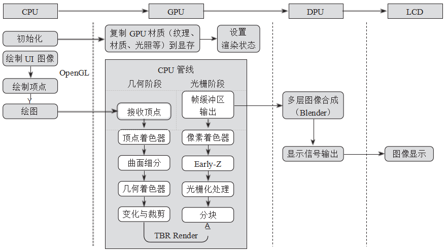 CPU 负责运行操作系统,进行整体系统的控制和应用 程序的管理,并处理触摸屏 的点击。 GPU 负责图形渲染和图像处理。 D PU 负责管理和控制显示设备的输出 |